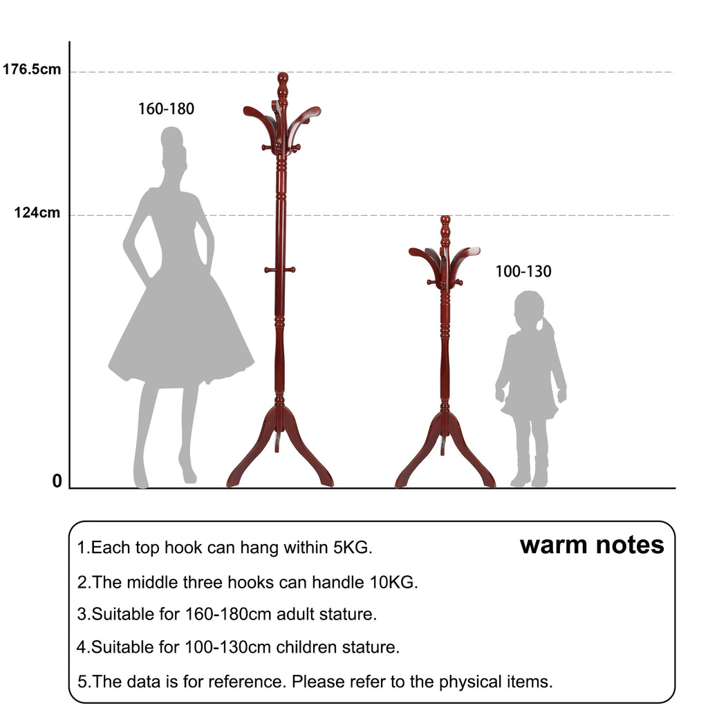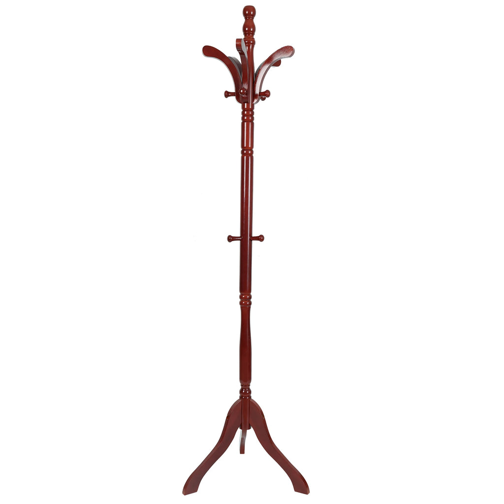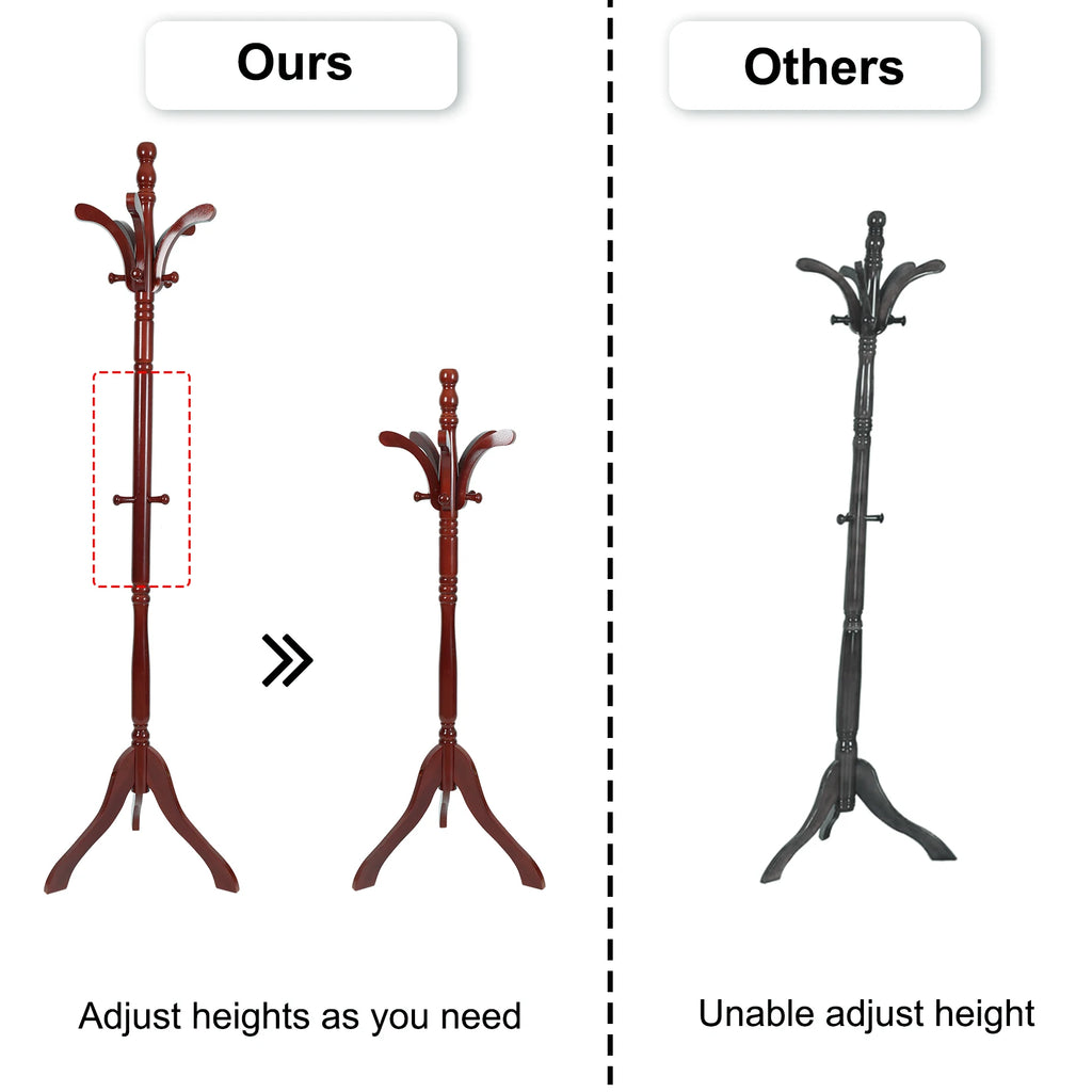 Wooden Coat Rack Stand Height Adjustable Hall Tree Entryway Clothes Rail
